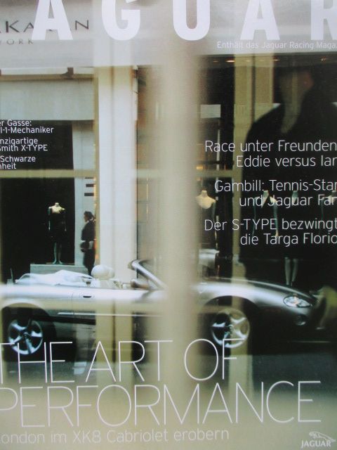 Jaguar +Racing Maazin Herbst 2001 London im XK8 Cabrio erobern, X-Type,XJ13, XJR 9 LM von 1988, S-Type Sport, 92 Seiten starkes Deutsches Heft