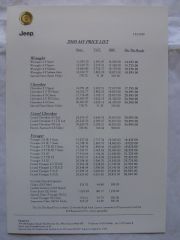 Jeep Preisliste Wrangler Cherokee Grand Cherokee Voyager 15/10/99 1Seiter von Englischem Händler.