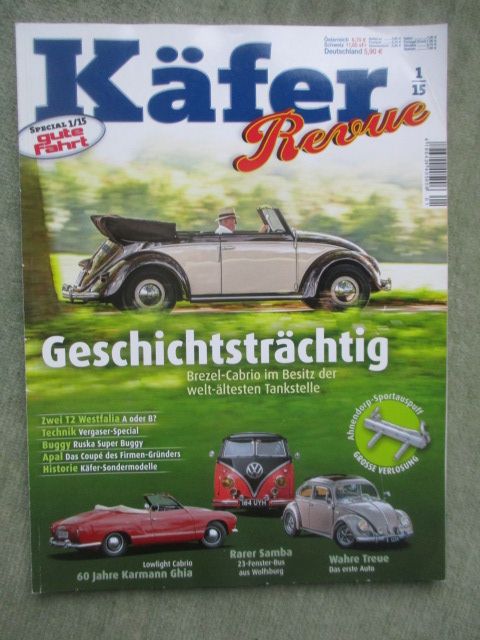 Käfer Revue 1/2015,Brezel Cabrio 1951, T1 Samba 1956, Ovali 1954, Apal Coupé, Brezel Radios, VW 1600 Variant Brasilien,Vergaser Special, Karmann Ghia Cabrio,VT T2a Westfalia Oslo vs. VW T2b Westfalia Helsinki,gebrauchtes Heft