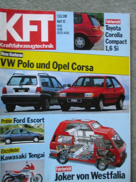 kft die Autozeitschrift 10/1990 VW T3 Westfalia Joker,Ford Escort, VW Polo typ86 vs. Corsa A,Corolla compact 1.6Si,Kawasaki Tengai,Gebrauchtkauf BMW R65,Ford Fiesta 1.4i CLX,gebrauchtes Heft.