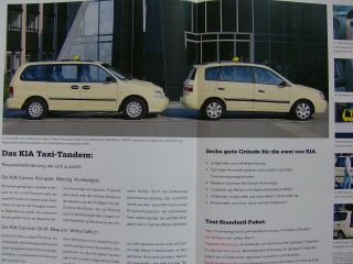 Kia Die Taxis Prospekt 8/2003 NEU Carnival Carens 4seiter mit Preisliste.