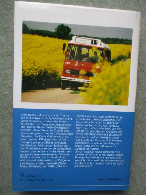 Koehler Bruno Bock Klammheimlich kam der Omnibus Kieler Geschichten um ein modernes Verkehrsmittel,Buch mit Schutzjmschlag, kleine Notiz auf der ersten Seite, 290 Seiten starkes schönes Buch.