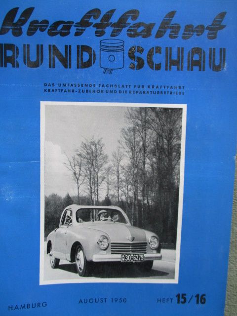 Kraftfahrt Rundschau August 1950, Gutbrod Superior,Staunau K400 und K750,NSU Fox, altes Heft