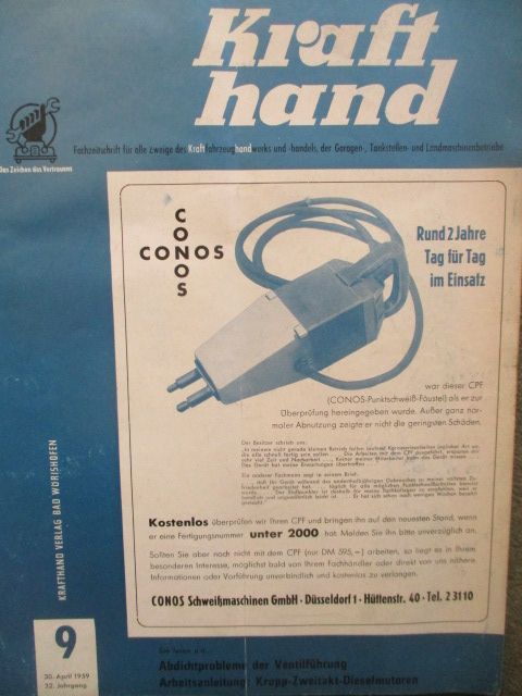 Krafthand 9/1959,Vicky Superluxus,DKW Junior,Krupp-Zweitakt-Dieselmotor,Zündapp Super Combinette,gebrauchtes Heft,Angebot!