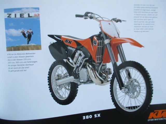 KTM Motocross SX 2002 Katalog,Modelle: 520 SX Racing, 400 SX Racing, 380SX, 250SX, 125 SX,Querformat, 20 Seiten stark, Stand: Juli 2001,neuwertiger Zustand.