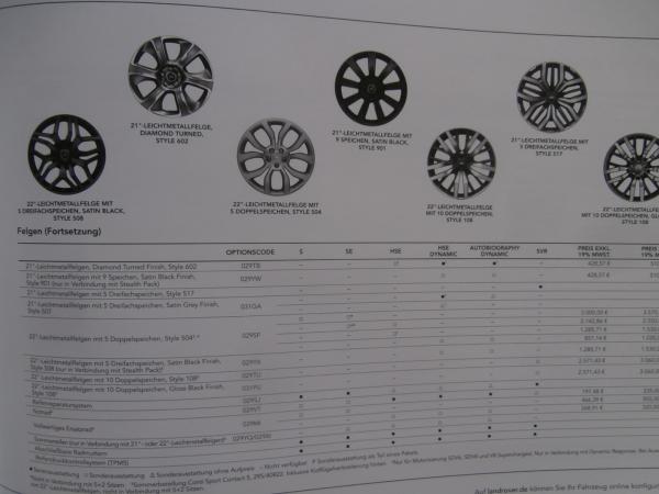 Land Rover Range Rover Sport Preisliste Dezember 2016 SE HSE SVR,23 Seiten stark.
