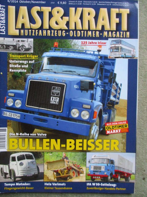 Last & Kraft 6/2014 Tempo Matador,Hela Varimot,IFA W50 Sattelzug,125 Jahre Irizar,Volvo N1225,gebrauchtes Heft.