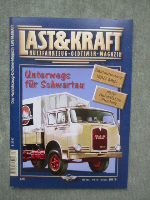 Last & Kraft Nutzfahrzeug-Oldtimer-Magazin 4/1999 Firmenchronik Schwartau, Südwerke Omnibusse von 1953 Prospekt-Reprint,Restaurierung MAN Typ MKN,LKW-Geschichte FBW Chronik, Typenblatt MAN Typ 750 TL 1, gebrauchtes Heft