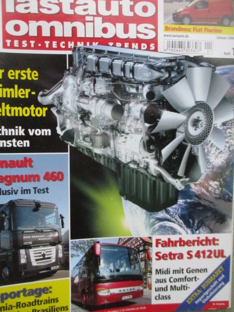 lastauto omnibus 1/2008,Test Renault Maganum 460.18T,Fiat Fiorino, Setra S 412 UL, DD15 von Detroit Diesel, Mercedes Ateco Hybrid, Mercedes Sprinter 4x4, Citaro G Hybrid, gebrauchtes Heft.