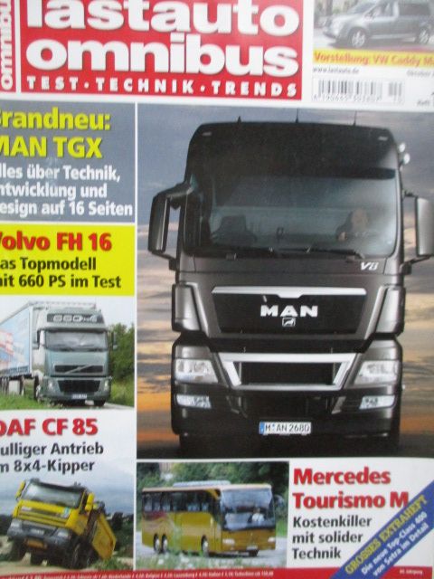 lastauto omnibus 10/2007,Test Volvo FH 16-660,Fahrbericht: DAF CF 85 FAD 460 8x4,VW Caddy Maxi Life,Fiat Scudo Maxi, Mercedes Tourismo M, Iribus Magelys,Spezial: der neue MAN TGX V8,Man Hybridbus,gebrauchtes heft.