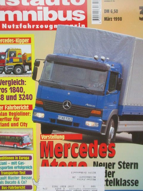 lastauto omnibus 3/1998 iveco Eurotech 440 E38, Renault Master TDI, Mercedes Atego,Actros Kipper im Vergleihc 1840K und 2648K und 3240,Dauertest Fiat Scudo Kombi TD,Neoplan Regioliner N 3016,Volvo B10-400 M/NFH,Auwärter Gera City Skate,gebrauctes Heft.