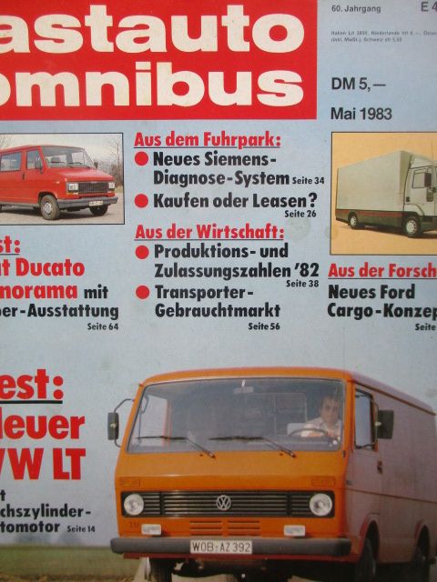 lastauto omnibus Mai 1983, VW LT35 Kastenwagen Ottomotor, Toyota Model F, Fiat Ducato Luxusbus Panorama,Gelenkzugtechnik,gebrauchtes Heft