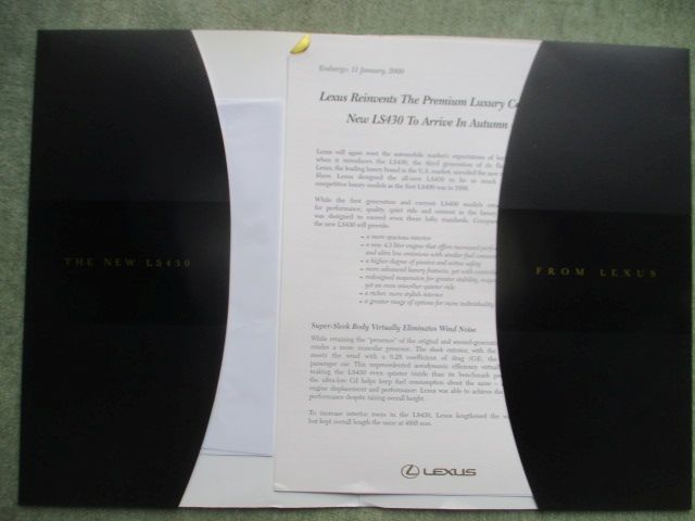 Lexus LS430 Pressemappe Englisch January 2000, sehr selten mit Diafoto