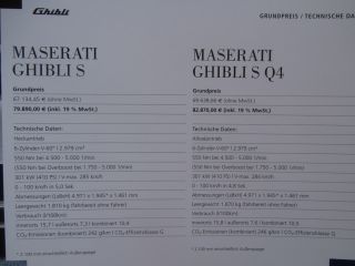 Maserati Ghibli +S + S Q4 Preisliste Juli 2014 NEU,