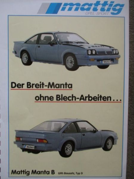 mattig Opel Sport Opel Manta C,2 Seiten stark mit Preisen,selten.