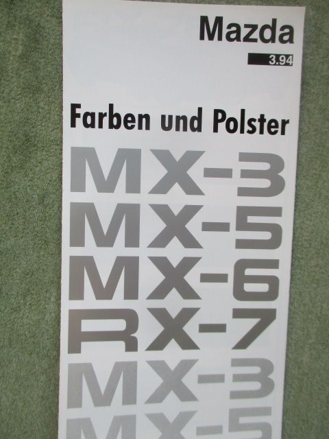 Mazda Farben und Polster 3.1994,Modelle: MX-3,MX-5,MX-6,RX-7,neuwertiger Zustand