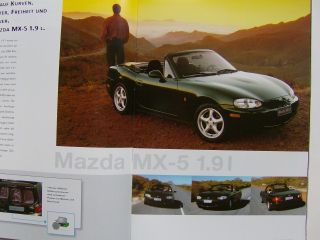 Mazda MX-5 Prospekt Februar 1999 NB, 27 Seiten stark, Hdl.Stempel hinten drauf.