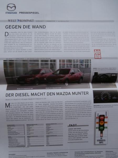 Mazda Pressespiegel Fakten & Informationen zum Dieselmotor im Mai 2017,A3 Format auf A4 gefaltet,sehr selten.