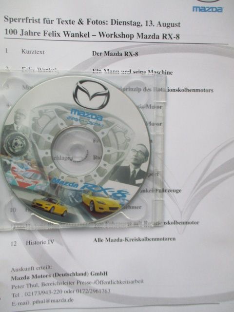 Mazda RX-8 Pressemappe +100 Jahre Felix Wankel