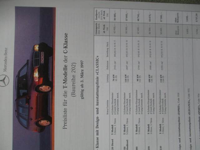 Mercedes Benz C-Klasse T-Modelle W202 C220 diesel C250 TD C180 C200 C230 März 1997