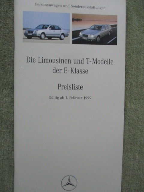 Mercedes Benz E-Klasse +T-Modelle Preisliste W210 E200CDI/220 290TD 300TD,E200-E55AMG Preisliste Februar 1999,51 Seiten stark.