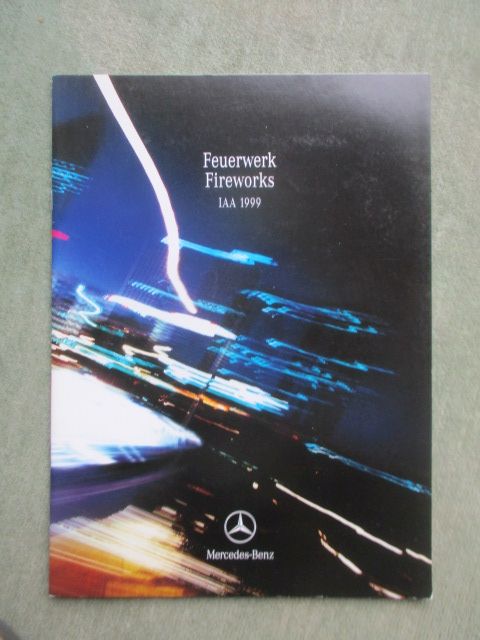 Mercedes Benz Feuerwerk Fireworks IAA 1999 September 1999,A3 Format, Deutsch/Englisch,alle Baureihen, 24 Seiten stark,gab es nur auf der IAA in Frankfurt,guter Zustand,recht selten......