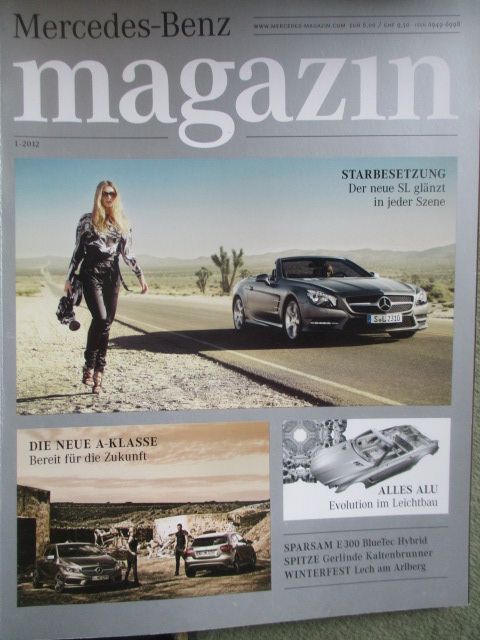 Mercedes Benz magazin 1-2012,neue A-Klasse, neue SL,E300 BlueTec Hybrid, C63 AMG coupe black series,Highlights der B-Klasse,Ayrton Senne und sein 190E W201,gebrauchtes Heft