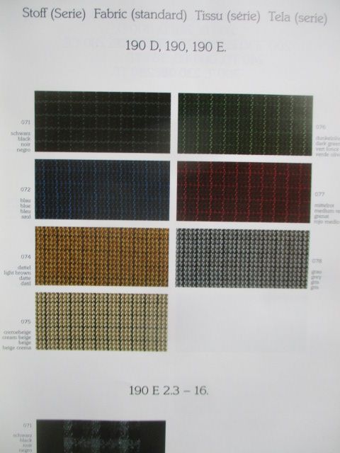Mercedes Benz Polsterungen Juni 1984, W201,W123,W126,Leder,Velours, MB-Tex, R107,C126,,sehr selten