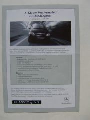 Mercedes Benz Preisliste A-Klasse BR168 CLASSICspirit 1/2000 A4 Format, 2seiter, leichte Knickspuren, Modelle: A140 A160 A70CDI.