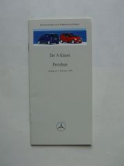 Mercedes Benz Preisliste A-Klasse BR168 Februar 1999