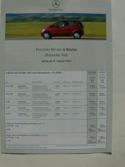 Mercedes Benz Preisliste A-Klasse BR168 Januar 2000 NEU