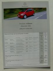 Mercedes Benz Preisliste A-Klasse BR168 Januar 2001