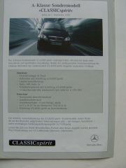 Mercedes Benz Preisliste A-Klasse CLASSICspirit BR168 September 1999 NEU, 2 Seiten stark.