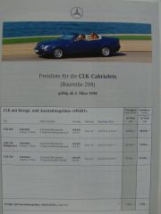Mercedes Benz Preisliste CLK-Cabriolets BR208 März 1998,