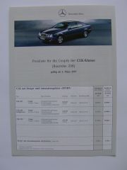 Mercedes Benz Preisliste CLK-Coupes W208 3/1997 NEU