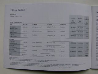 Mercedes Benz Preisliste E-Klasse Cabriolet BR207 Januar 2010,34 Seiten stark NEU.