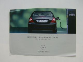 Mercedes Benz Preisliste E-Klasse Limousine BR211 E200 NGT Stand Dezember 2003, sehr selten, 2 Seiten stark.