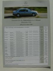 Mercedes Benz Preisliste E-Klasse Limousine W210 Januar 2000