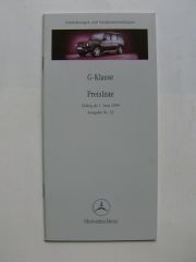 Mercedes Benz Preisliste G-Klasse Juni 1999 Nr.22 BR461 BR463, 35 Seiten stark mit