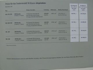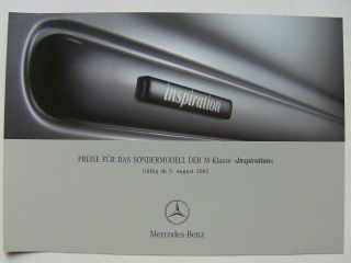 Mercedes Benz Preisliste M-Klasse Inspiration BR163 August 2002 NEU, sehr selten.