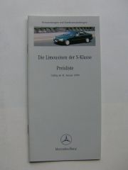 Mercedes Benz Preisliste S-Klasse W220 Januar 2000 NEU