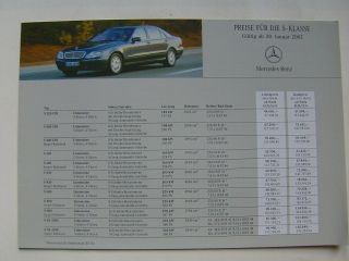Mercedes Benz Preisliste S-Klasse W220 Januar 2002
