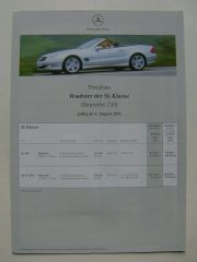 Mercedes Benz Preisliste SL-Klasse BR230 August 2001