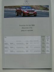 Mercedes Benz Preisliste SLK BR170 April 2000 NEU,