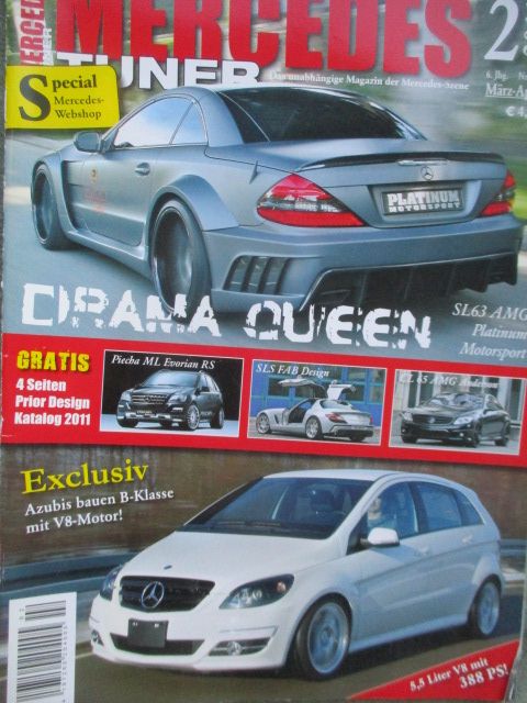 Mercedes Tuner 2-2011,SLS 63 AMG von FAB Design, M-Klasse W164 von Piecha Design,CLS C280, Smart fortwo cabrio von Behrmann,SL500 von Inden Design R231,MEC Design CL500 und CL600,SL320 R129,SL65 AMG von MR Car Design,S-Klasse von SAT Autosport, CLK W209 von Prior-Deisgn,CL65 AMG von Anderson, B55 Einzelstück, SL55 AMG & CL500 von Ernst Car Deisgn,R230 von Royal, SL63 AMG Widestar von Brabus, SL500 von HS Motorsport,gebrauchtes Heft