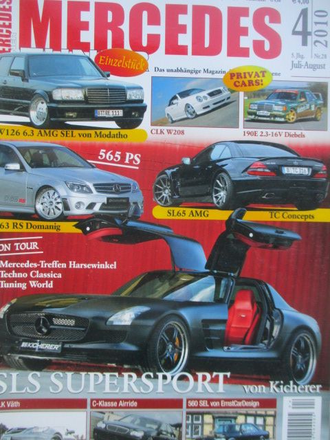 Mercedes Tuner 4-2010,SL R230 PD-Series, 190E 2.3-16V diebels, C220 CDI W203, SLK V58 R171 von Väth, SL65 AMG von TC Concepts,C63 AMG von wheelsandmore, SL65 AMG von SAT,S500 von MEC Design, W126 6.3 AMG SEL,C63RS von Domanig,E-Klasse von ATT-Tec,SLK500 R171,SLK 55 AMG von Piecha, 560SLC W126,SLS Supersport Edition von Kicherer,neuwertiges frühes Heft
