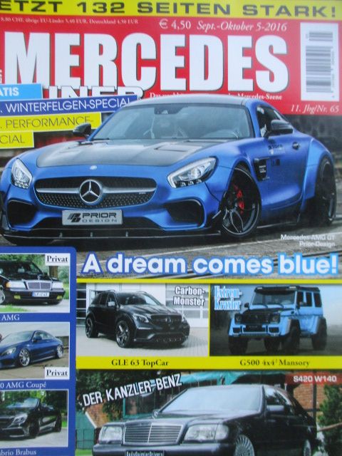 Mercedes Tuner 5-2016,Vito Mixto 114 CDI Hartmann,SLS AMG RFK-Tuning-Brabus S-cabrio,C300 AMG Coupe, C43 AMG W202,GLE 63 Topcar, S420 W140,AMG GT Prior Design, G500 4x4 Mansory,G63 AMG von G-Power,A45 AMG von CPA Performance, AMG C63 und C63S von NoLimit,Prior Design AMG GT S, Posaidon C63 K 680 RS5,Oxigin A-Klasse, AMG GT von MEC Design, E63 AMG S T-Modell von HS-Motorsport W213,E220d von DTE-Systems,Mercedes-AMG GT-R,neuwertiges Heft