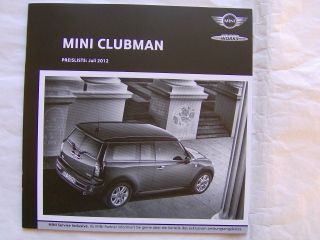 Mini Clubman R60 One Cooper +S +D +SD +JCW Juli 2012, 47 Seiten stark,neu.