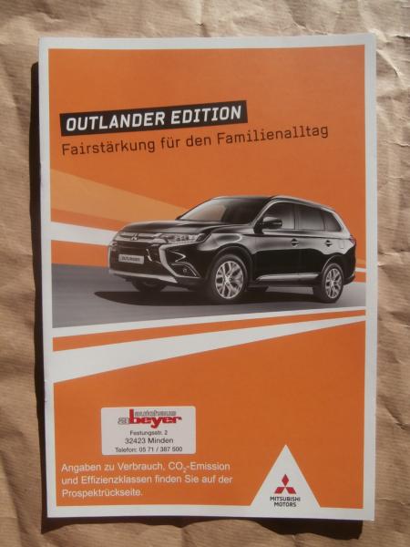 Mitsubishi Outlander Editio Februar 2018 Katalog,8 Seiten stark, Hdl.Aufkleber vorne drauf.