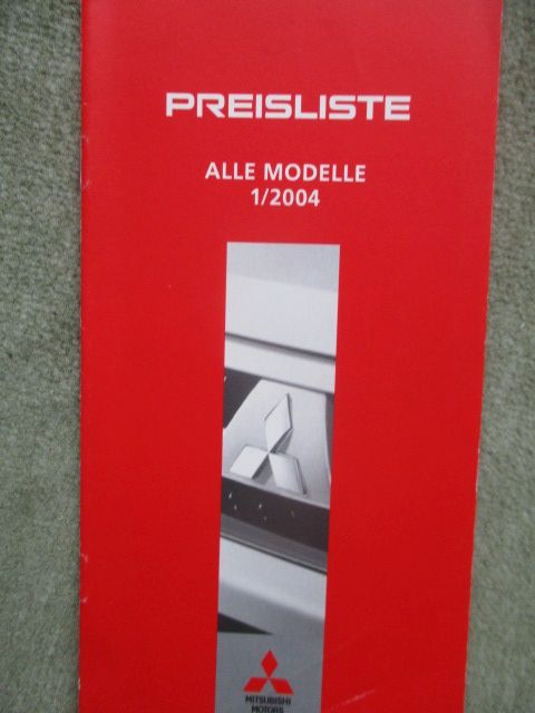 Mitsubishi Preisliste 1/2004 Space Star,Lancer, Lancer Evolution VIII,Carisma, Space Wagon,Outlander, Pajero,Pajero Pinin,L200,Lagerspuren.
